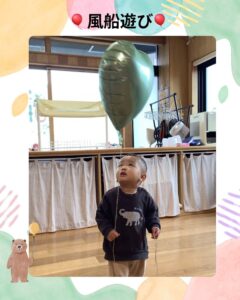 ヘリウム風船🎈で遊びました。 フワフワ浮いている風船に大喜びでした🤭✨ 捕まえようとぴょんぴょんする姿が可愛かったです❤️