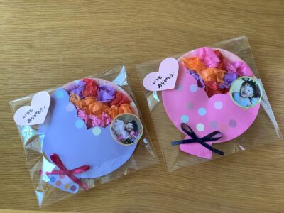 お花の色やラッピングシールは子どもたちが自分で選びました🌼